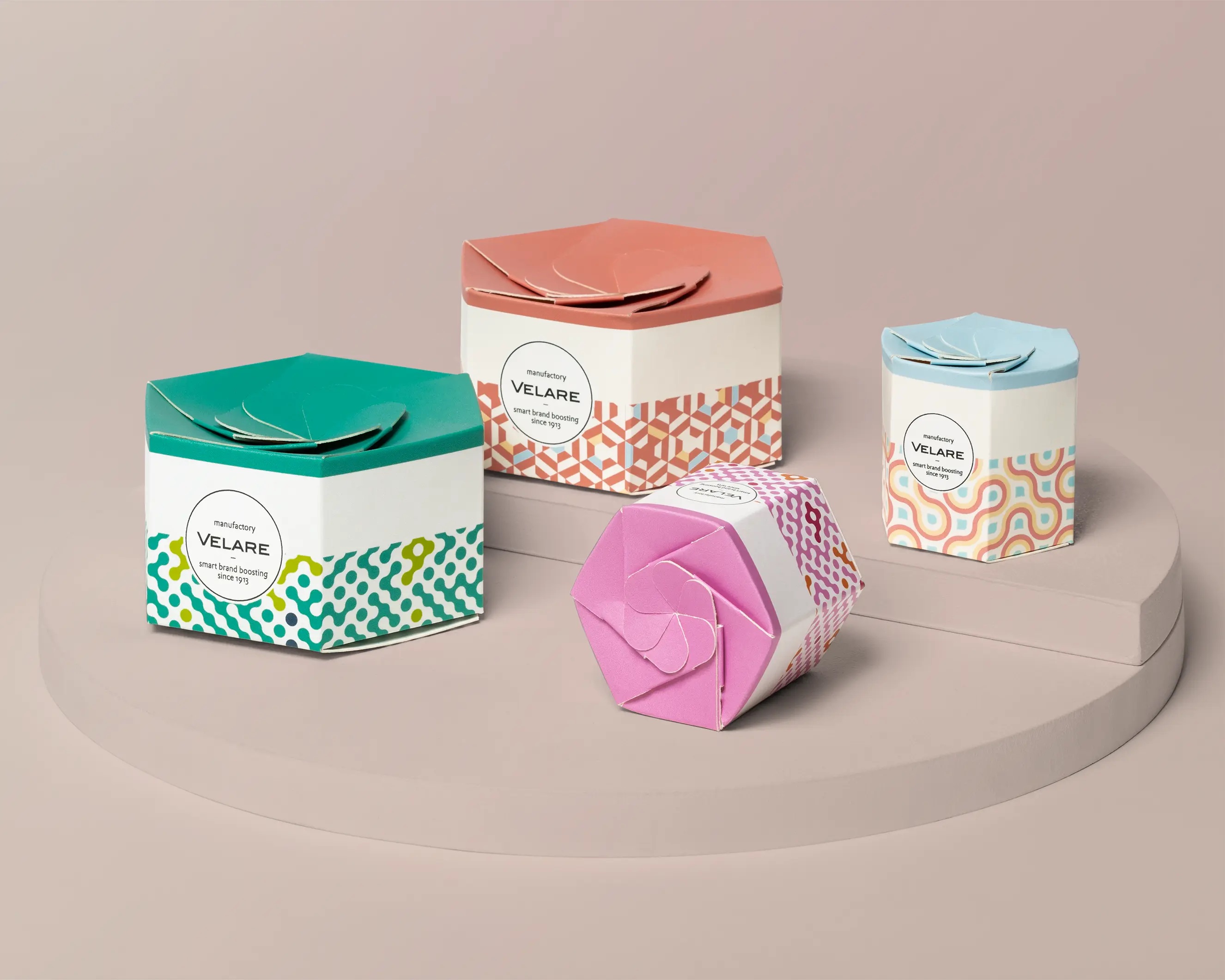 Die sechseckige Verpackung mit Schleifenverschluss ist eine auffällige Verpackung für Geschenke, Lebensmittel und Give-Aways. Diese besondere Verpackung bietet einen auffallenden Verschluss, der an eine Schleife erinnert und das Auspacken zum Erlebnis macht.